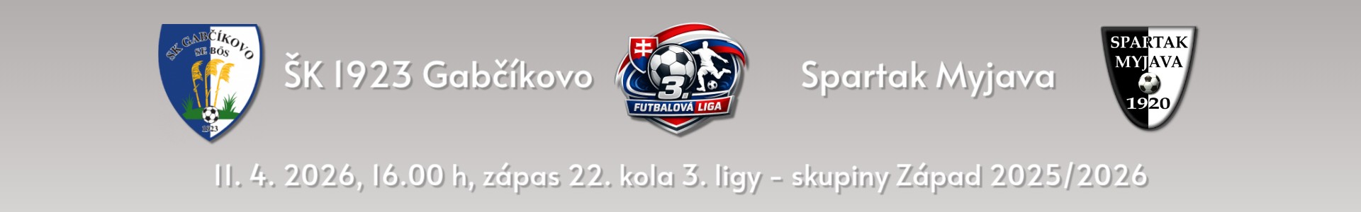 V sobotu 11. apríla 2026 čaká našich hráčov zápas 22. kola 3. ligy - skupiny Západ 2025/2026 proti domácemu tímu ŠK 1923 Gabčíkovo. Úvodný výkop je naplánovaný na 16.00 hod. a myjavský fanklub opäť pripravuje výjazd.